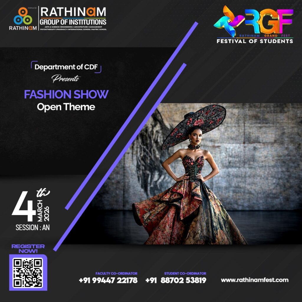 TECHNICAL: Fashion Show (Open Theme) Faculty Co-Ordinator: +91 99447 22178 Student Co-Ordinator: +91 88702 53819