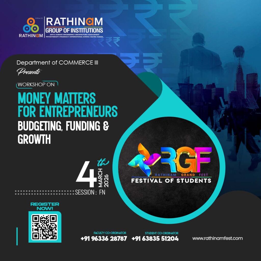 Workshop on :Money Matters for Entrepreneurs Budgeting, Funding & Growth Faculty Co-Ordinator:+91 96336 28787 Student Co-Ordinator:+91 63835 51204