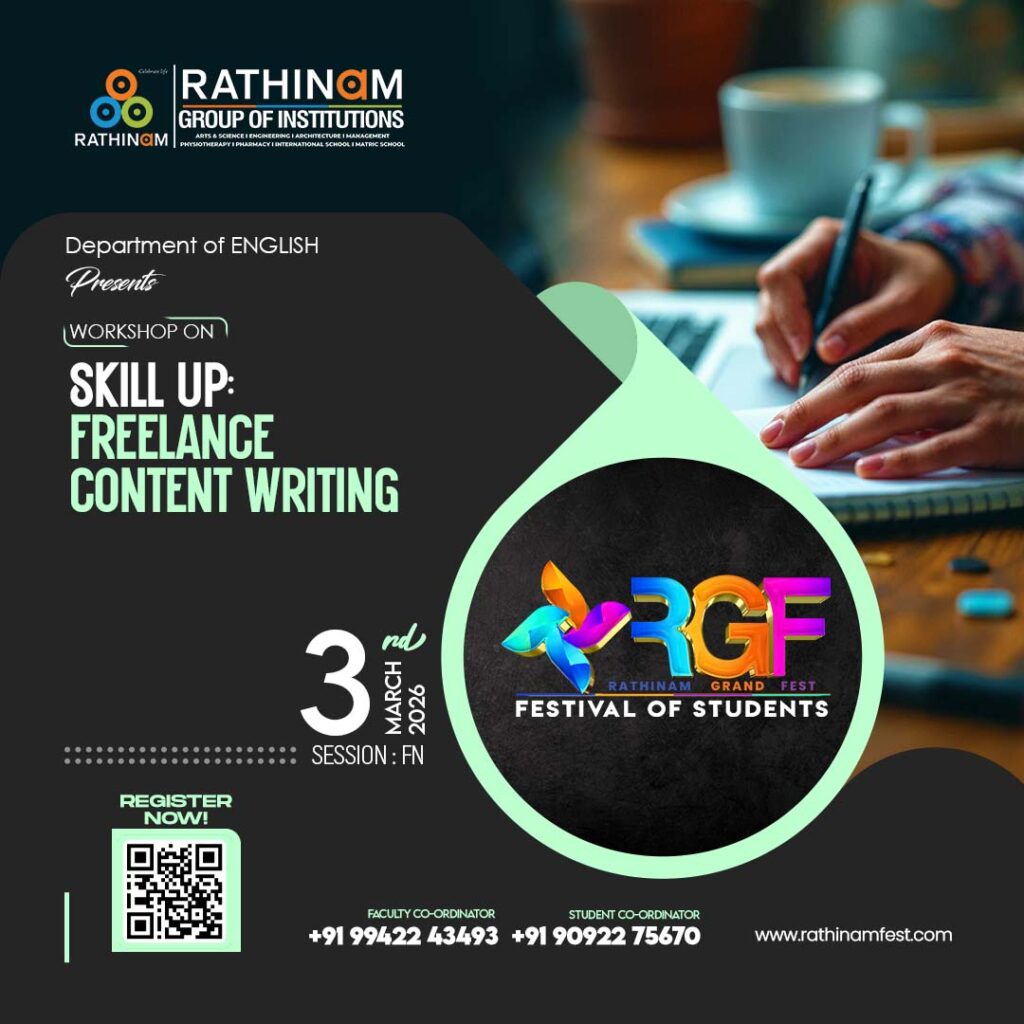 Workshop on : SKILL UP: FREELANCE CONTENT WRITING Faculty Co-Ordinator: +91 99422 43493Â Student Co-Ordinator: +91 90922 75670