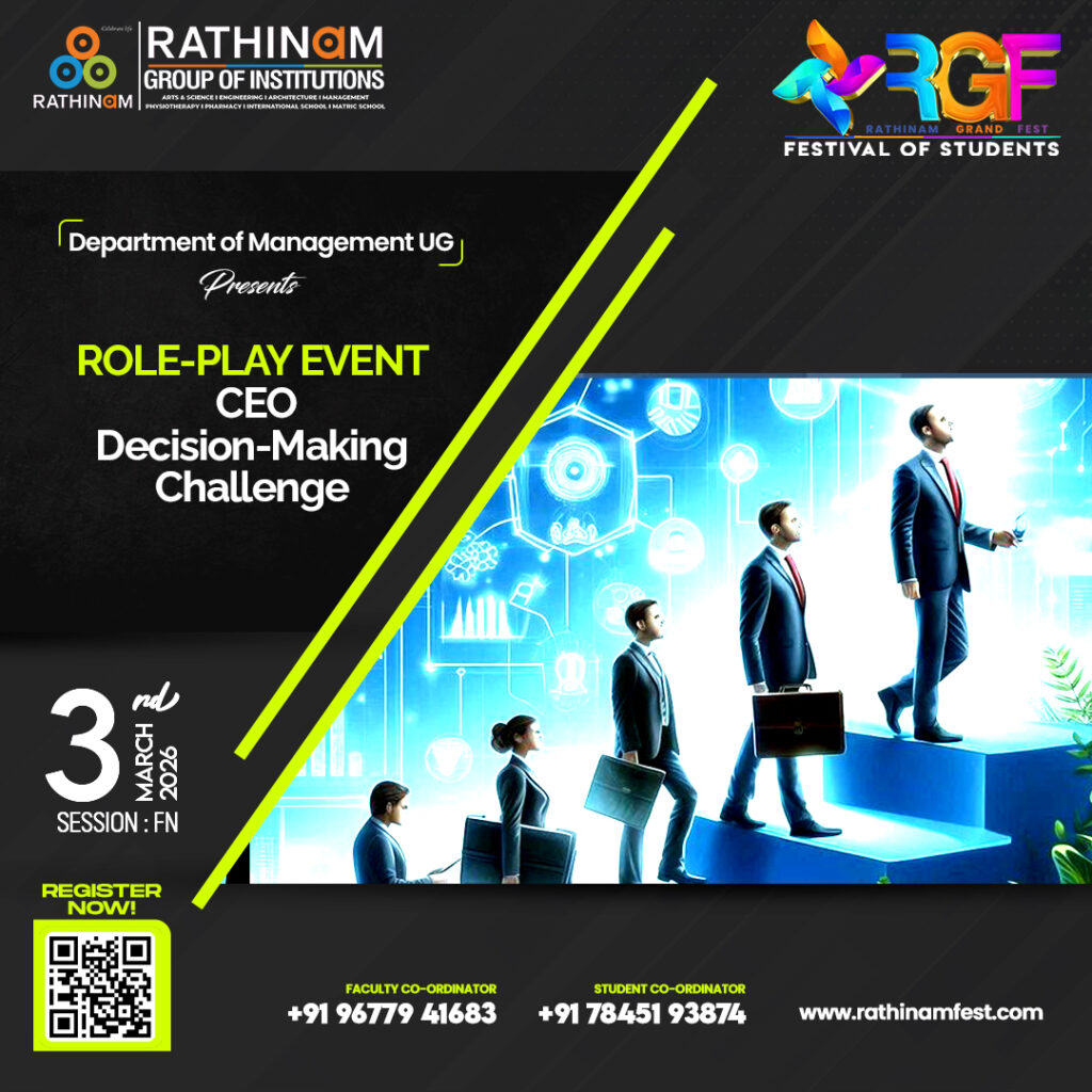TECHNICAL: ROLE-PLAY EVENT CEO Decision-Making Challenge Faculty Co-Ordinator:Â +91 96779 41683 Student Co-Ordinator: +91 78451 93874