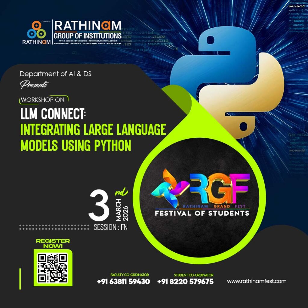 Workshop on :Llm Connect Intergrating Large Language Models Using Python Faculty Co-Ordinator:+91 63811 59430 Student Co-Ordinator:+91 82205 79675
