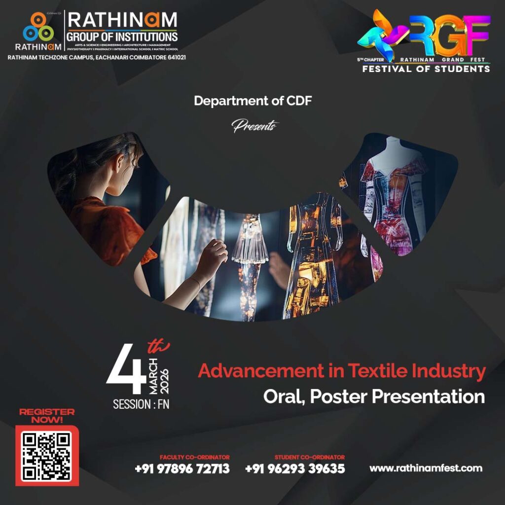 Advancement in Textile Industry Oral, Poster Presentation FACULTY CO-ORDINATOR +91 97896 72713 STUDENT CO-ORDINATOR +91 96293 39635