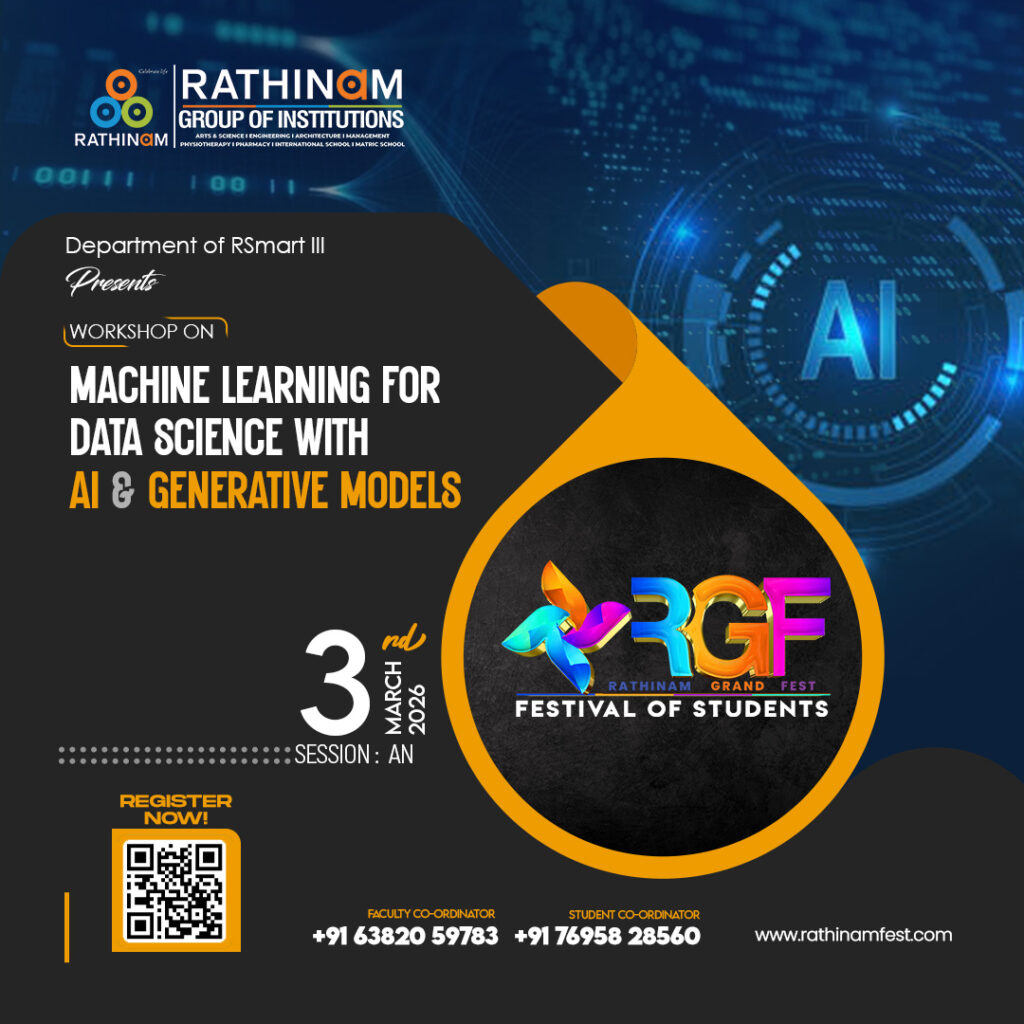Workshop on : MACHINE LEARNING FOR DATA SCIENCE WITH AI & GENERATIVE MODELS Faculty Co-Ordinator: +91 63820 59783 Student Co-Ordinator: