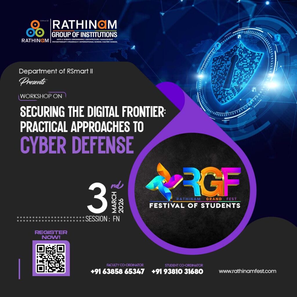 Workshop on :SECURING THE DIGITAL FRONTIER: PRACTICAL APPROACHES TO CYBER DEFENSE Faculty Co-Ordinator:+91 63858 65347 Student Co-Ordinator: +91 93810 31680
