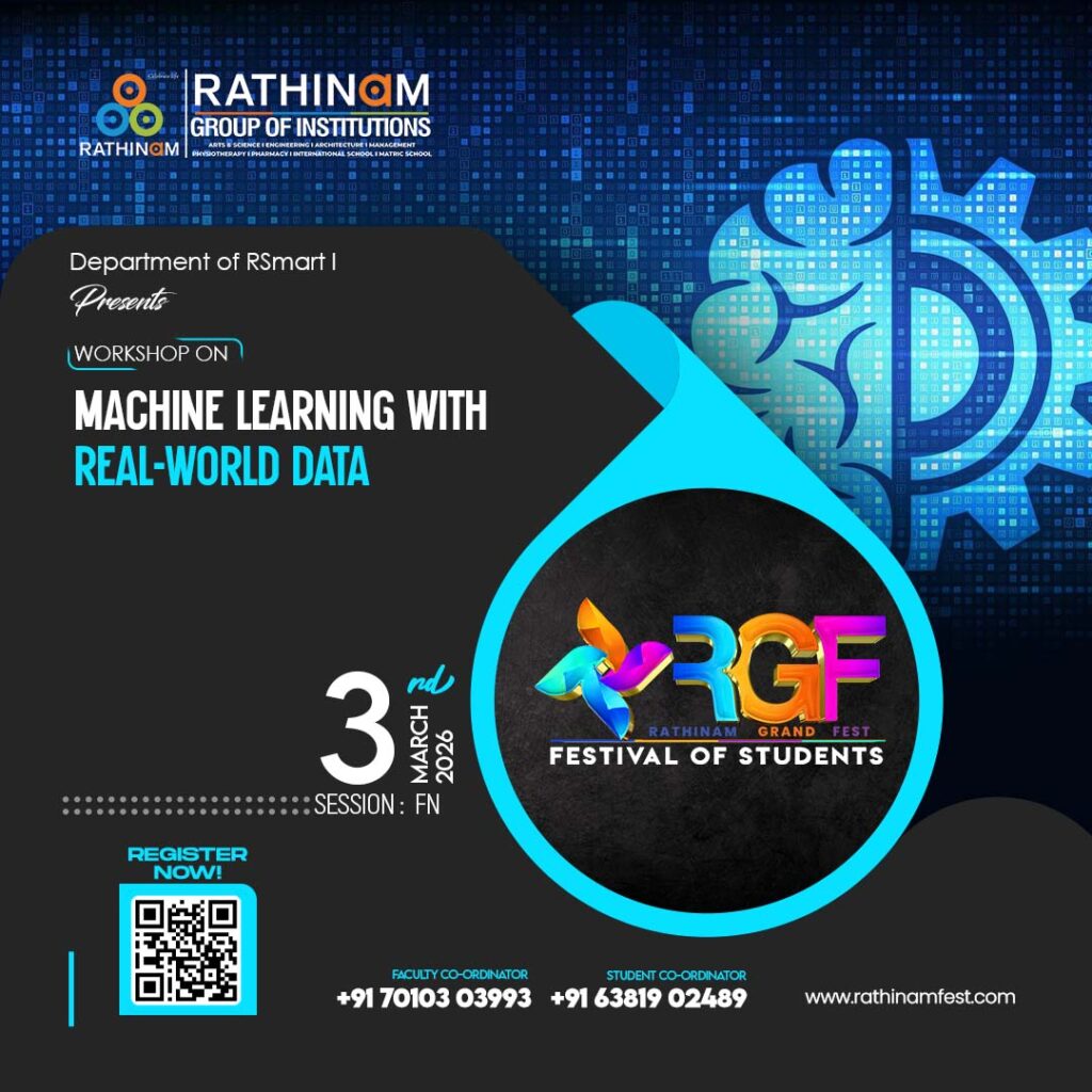 Workshop on : MACHINE LEARNING WITH REAL-WORLD DATA Faculty Co-Ordinator: +91 70103 03993 Student Co-Ordinator: +91 63819 02489