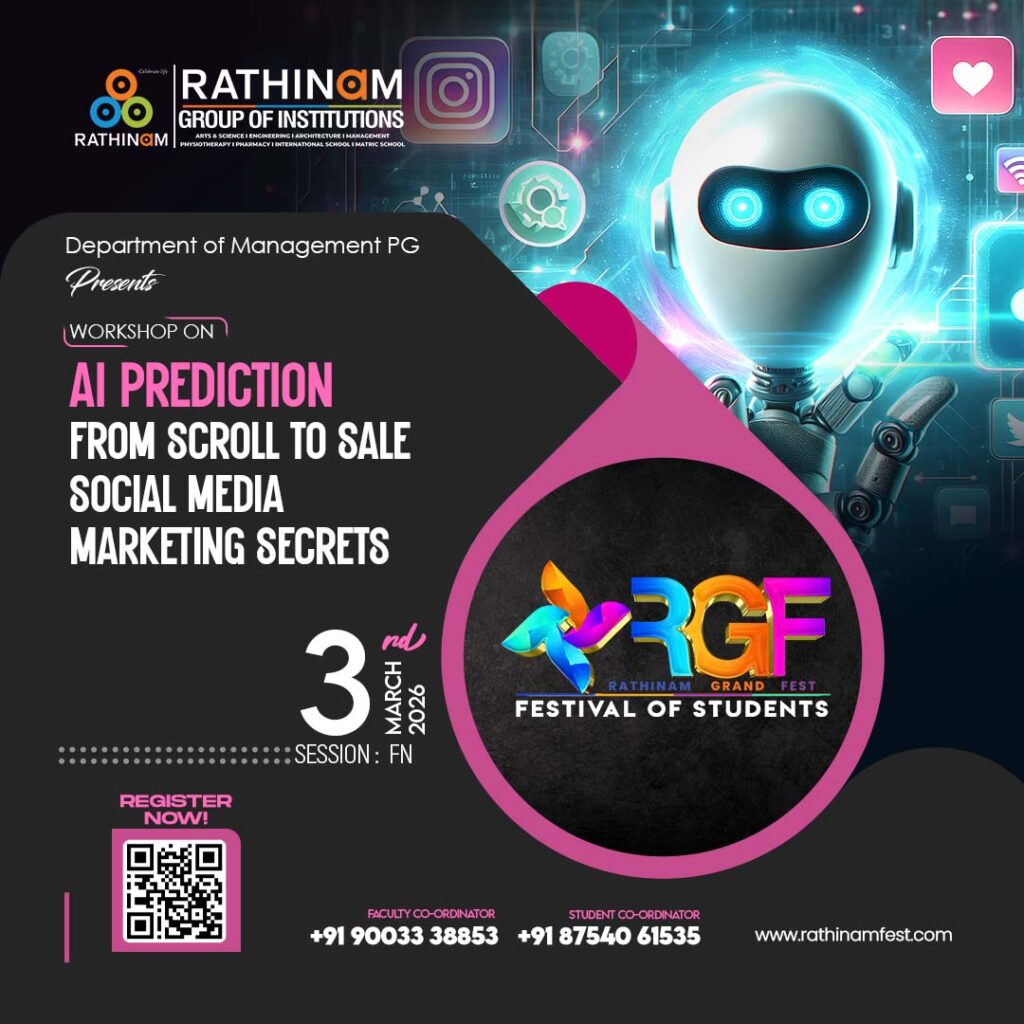 Workshop on :AI Prediction From Scroll to Sale Social Media Marketing Secrets Faculty Co-Ordinator:+91 90033 38853 Student Co-Ordinator:+91 87540 61535