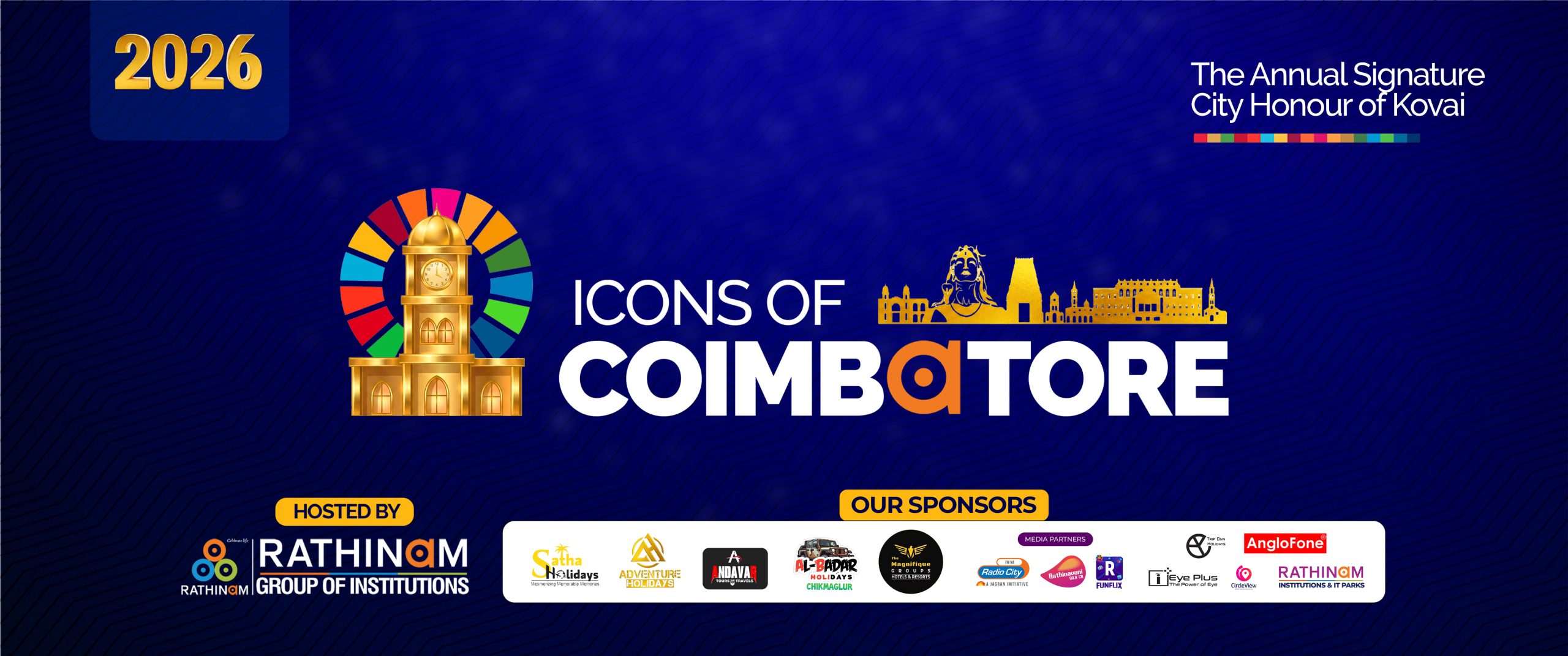 - Icons of Coimbatore is one of the largest and most influential recognition platforms in South India, conducted in strategic association with leading academic and institutional networks.