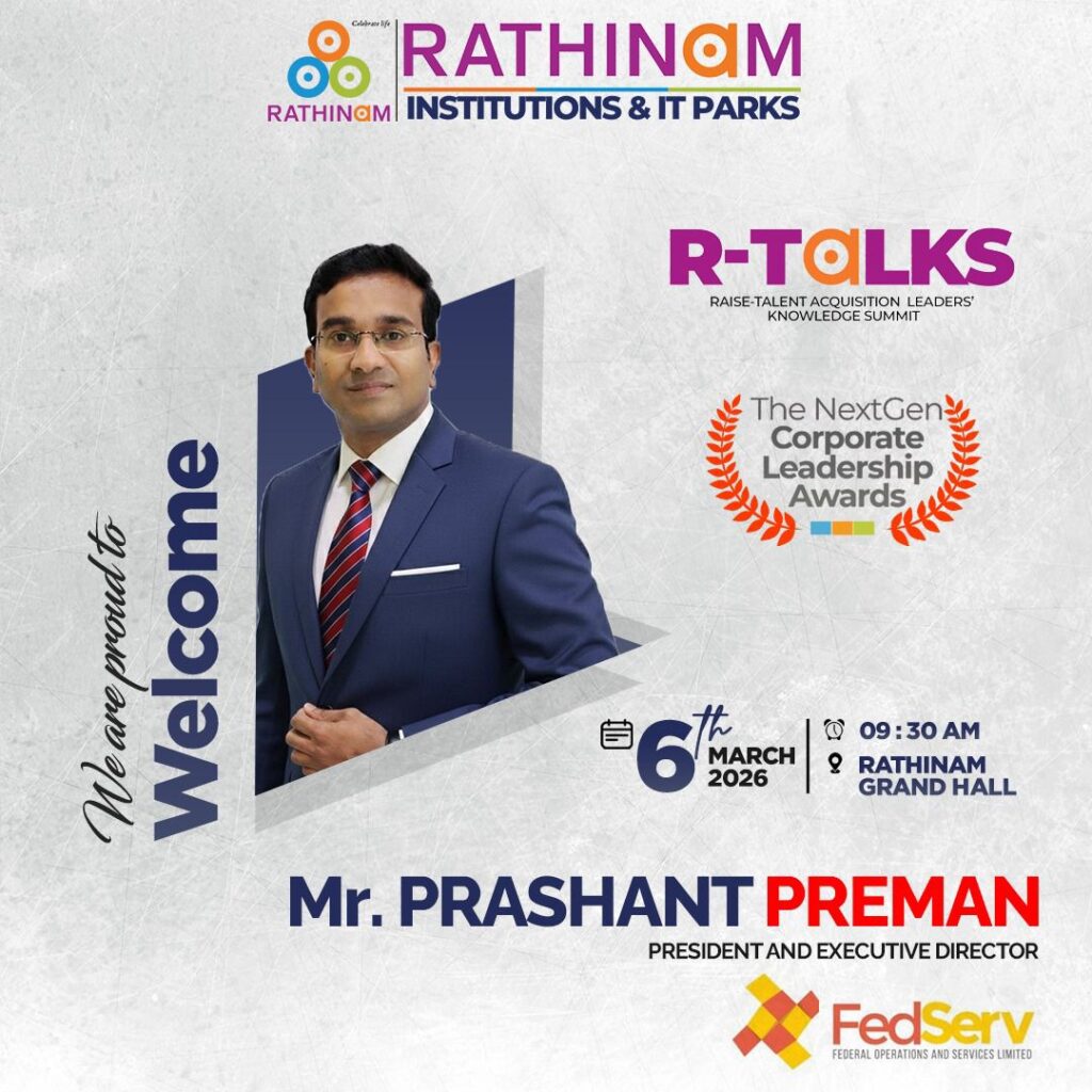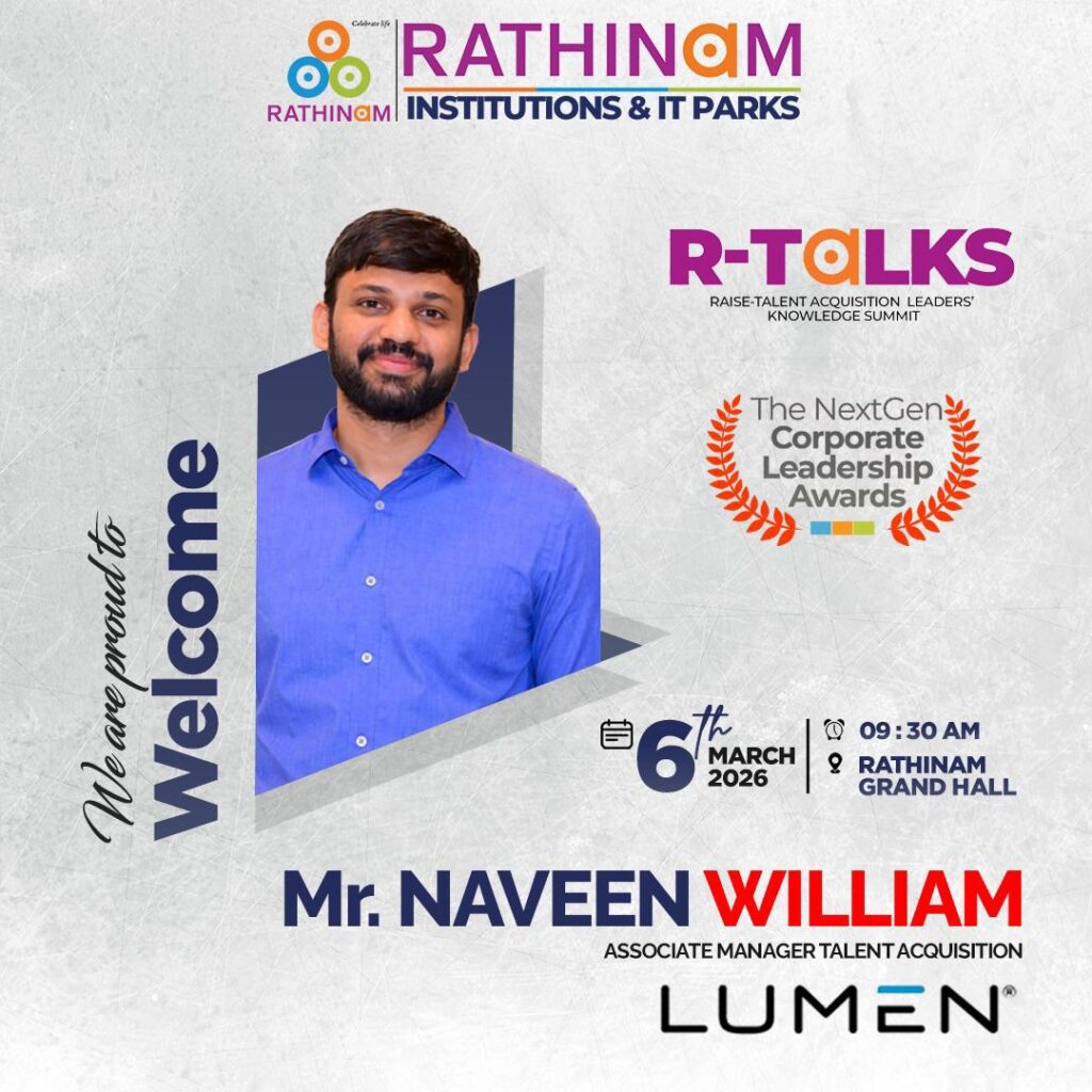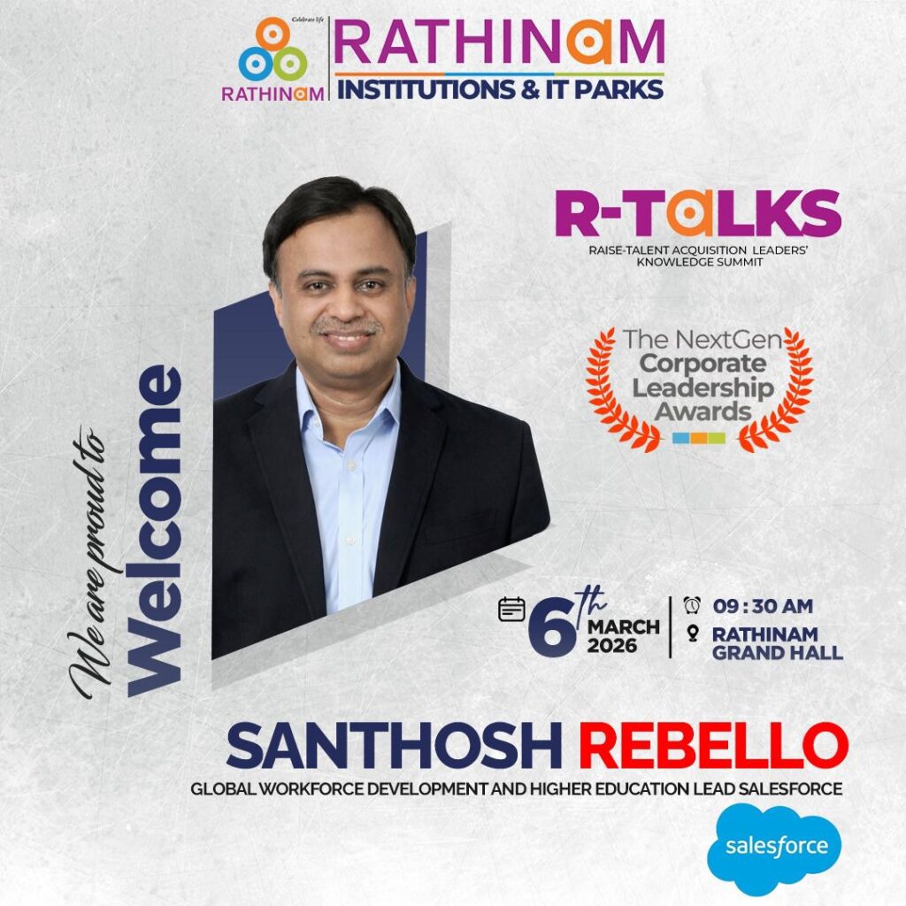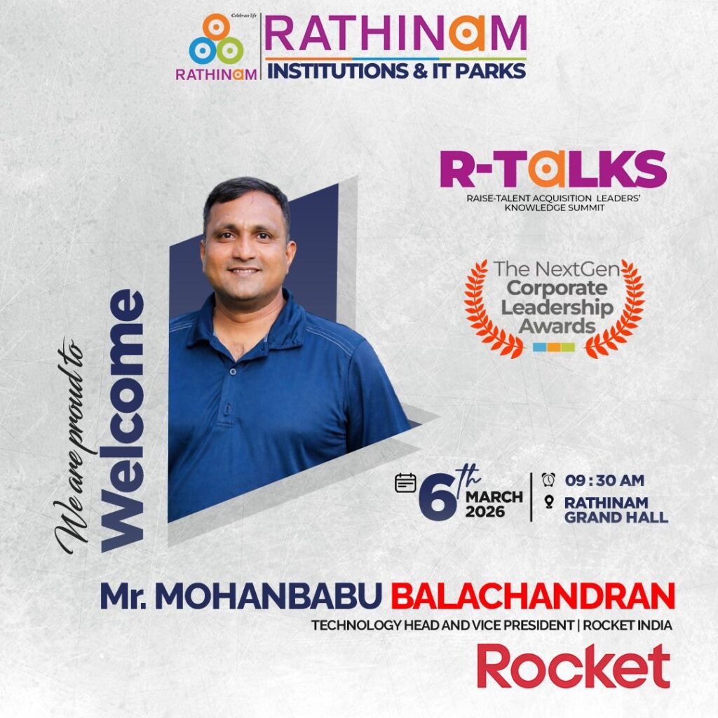 RTALKS -is an annual flagship platform that celebrates the visionaries shaping the future of work, leadership, and innovation every year. Hosted by the Rathinam Group of Institutions and IT Parks, RTALKS brings together corporate leaders, HR strategists, technology pioneers, and industry changemakers who are redefining how organizations grow, hire, innovate, and lead. RTALKS is a movement that connects industry and academia, enabling conversations that build tomorrow’s workforce and leadership ecosystem.Each year, RTALKS honors outstanding corporate and HR leaders who drive transformationthrough people, technology, and strategic vision. RTALKS 2026 marks a new milestone with the introduction of the Next Gen Corporate Leadership Awards, recognizing emerging leaders and trailblazers shaping the future of global business and workforce excellence.
