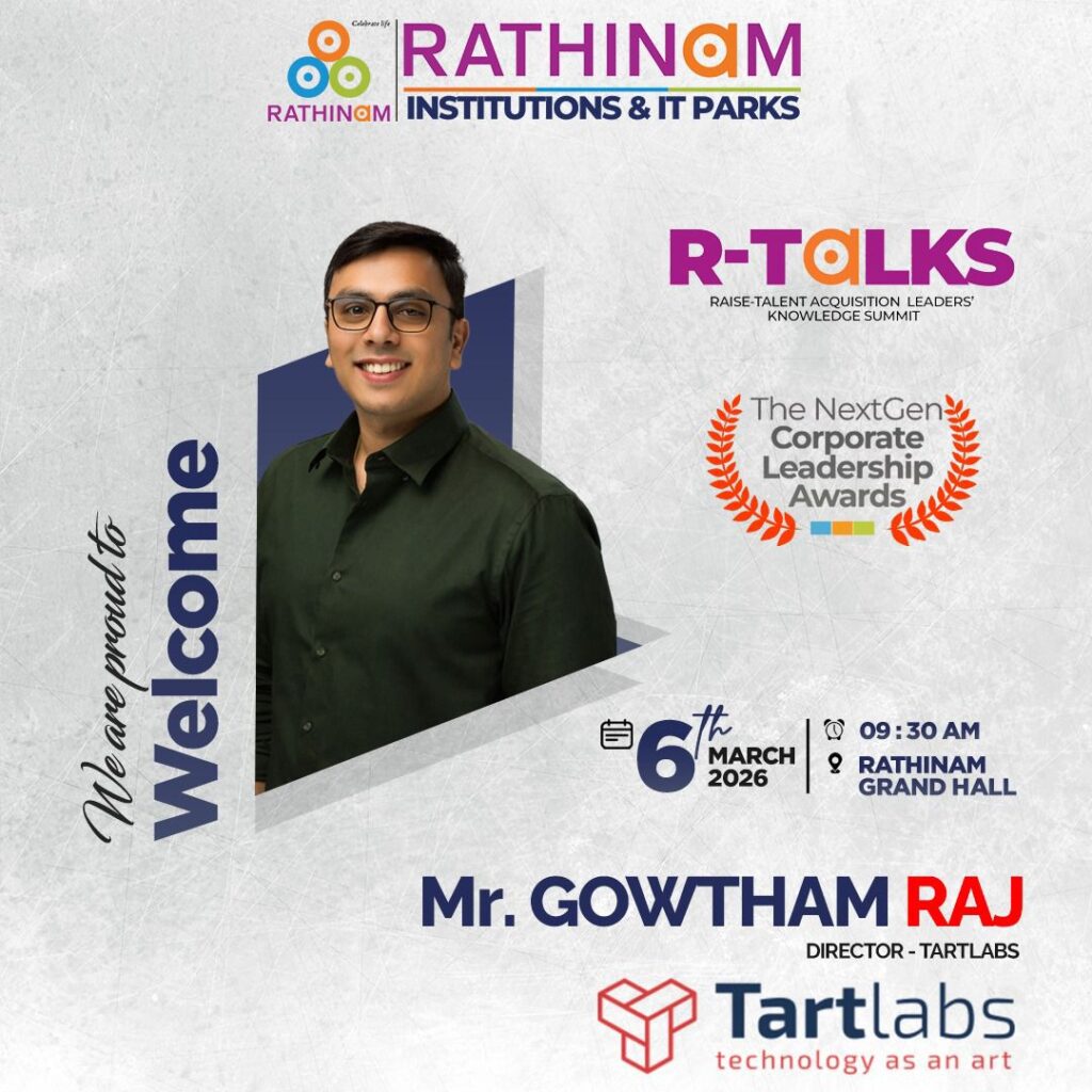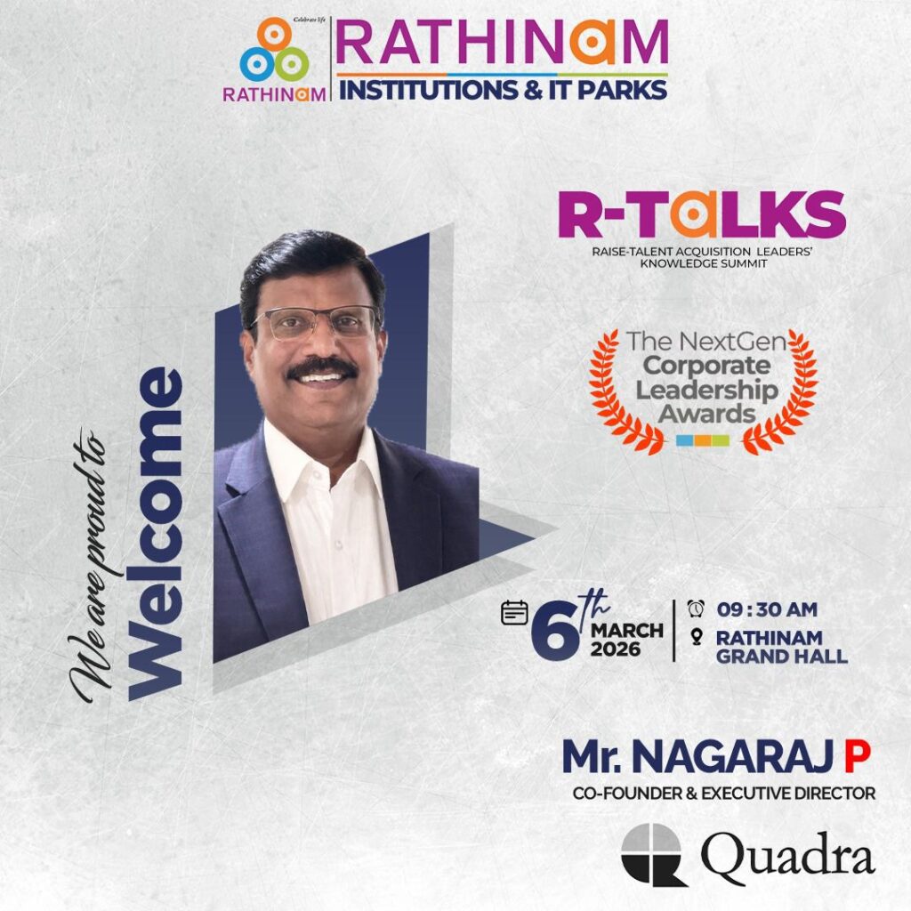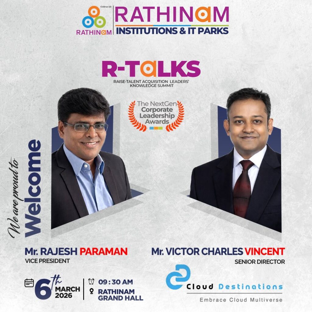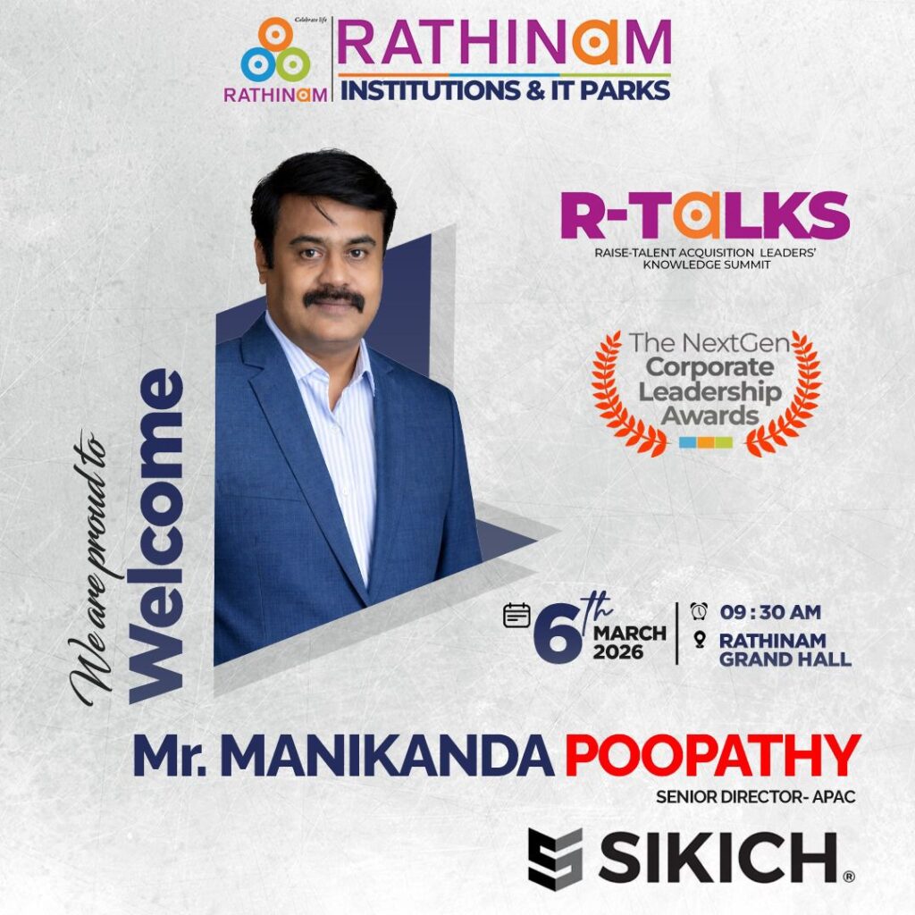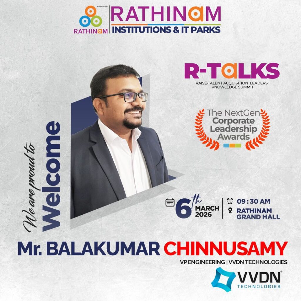 RTALKS -is an annual flagship platform that celebrates the visionaries shaping the future of work, leadership, and innovation every year. Hosted by the Rathinam Group of Institutions and IT Parks, RTALKS brings together corporate leaders, HR strategists, technology pioneers, and industry changemakers who are redefining how organizations grow, hire, innovate, and lead. RTALKS is a movement that connects industry and academia, enabling conversations that build tomorrow’s workforce and leadership ecosystem.Each year, RTALKS honors outstanding corporate and HR leaders who drive transformationthrough people, technology, and strategic vision. RTALKS 2026 marks a new milestone with the introduction of the Next Gen Corporate Leadership Awards, recognizing emerging leaders and trailblazers shaping the future of global business and workforce excellence.